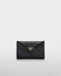 This sophisticated and functional envelope clutch in Saffiano leather has a sleek design. The accessory with card slots is decorated with the enameled metal triangle logo. - Product code: 1MF048_2CLQ_F0002 - Snap closure - Enameled metal triangle logo - Three card slots - Leather lining - Imported Height: 15cm Width: 23cm MATERIALS Main material: Calfskin