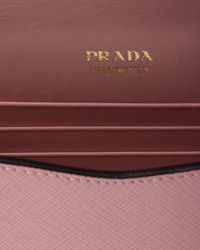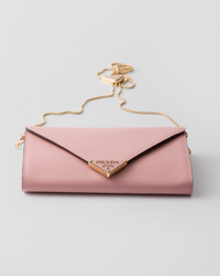 The signature crosshatched texture of Saffiano leather elevates this mini bag. The silhouette blends sleek lines with Prada’s codes, resulting in a sophisticated accessory adorned with the iconic triangle that stands out on the front closure and the elegant shoulder strap. - Product code: 1BP051_NZV_F04G8_V_5TO - Detachable, adjustable chain shoulder strap, length: 115 cm - Zipper pocket on the back - Metal hardware - Enameled metal triangle logo closure - Magnetic flap closure - Nappa leather lining with patch pocket and card slots - Imported Height: 11.5cm Width: 20cm MATERIALS Main material: Calfskin