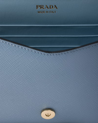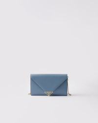 The signature crosshatched texture of Saffiano leather elevates this mini bag. The silhouette blends sleek lines with Prada’s codes, resulting in a sophisticated accessory adorned with the iconic triangle that stands out on the front closure and the elegant shoulder strap. - Product code: 1BP051_NZV_F0683_V_5TO - Detachable, adjustable chain shoulder strap, length: 115 cm - Zipper pocket on the back - Metal hardware - Enameled metal triangle logo closure - Magnetic flap closure - Nappa leather lining with patch pocket and card slots - Imported Height: 11.5cm Width: 20cm MATERIALS Main material: Calfskin