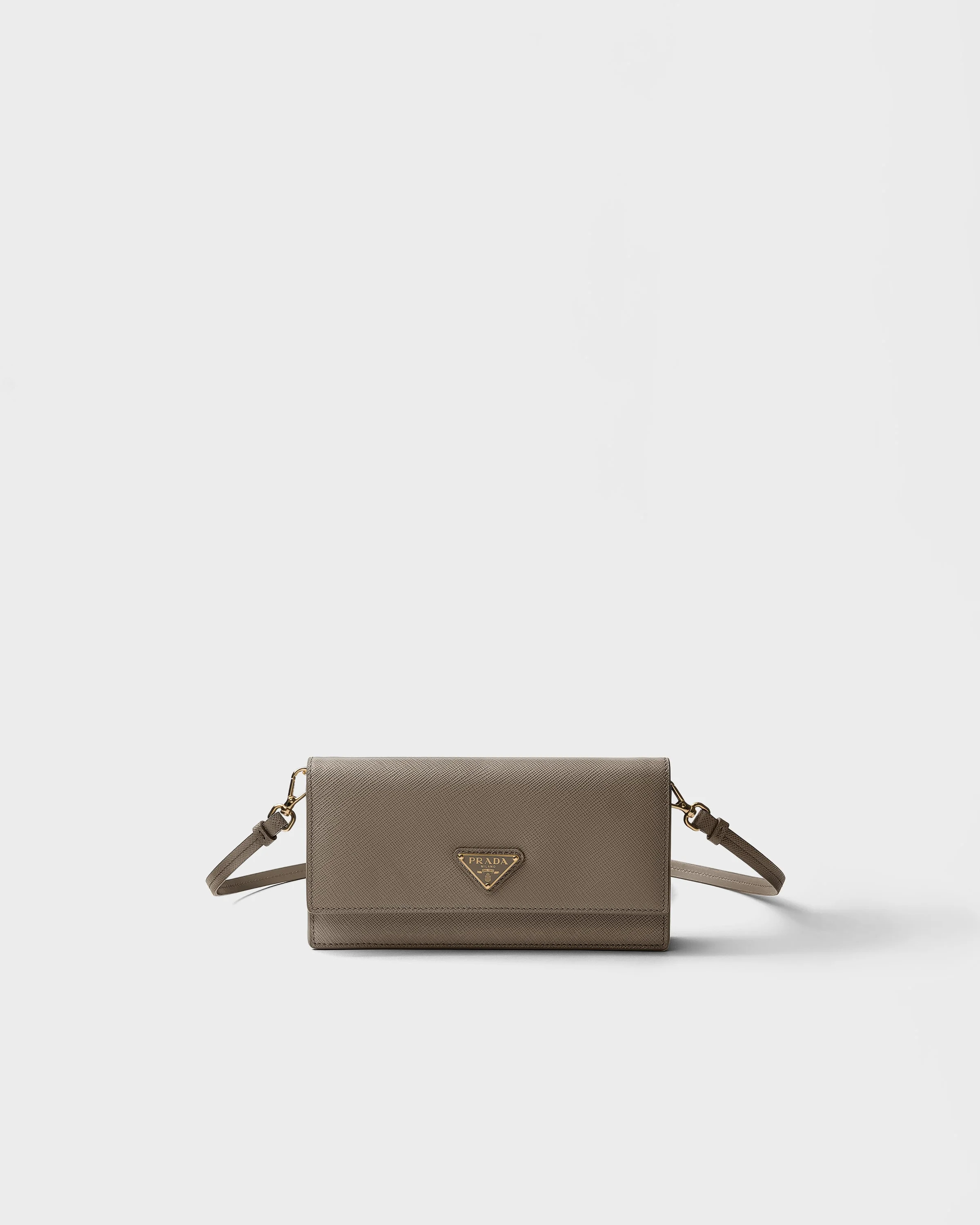 Saffiano leather, an emblematic material of Prada collections, stands out for its crosshatch pattern with waxed finish that gives each design versatile, elegant charm. This mini-bag has a sleek yet refined geometric shape, illuminated by the metal hardware and decorated with the iconic enameled metal triangle logo. - Product code: 1NF059_2DB3_F0572 - Magnetic clasp - Enameled metal triangle logo - Detachable, adjustable leather shoulder strap - Nappa leather interior with card slots - Imported Height: 9.5cm Width: 18cm Length: 3cm MATERIALS Main material: Calfskin