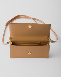 Saffiano leather, an emblematic material of Prada collections, stands out for its crosshatch pattern with waxed finish that gives each design versatile, elegant charm. This mini-bag has a sleek yet refined geometric shape, illuminated by the metal hardware and decorated with the iconic enameled metal triangle logo. - Product code: 1NF059_2DB3_F0018 - Magnetic clasp - Enameled metal triangle logo - Detachable, adjustable leather shoulder strap - Nappa leather interior with card slots - Imported Height: 9.5cm Width: 18cm Length: 3cm MATERIALS Leather