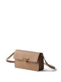 Embleme flap mini bag Highlights - Brown - Saffiano leather - Zip fastening pocket - Adjustable shoulder strap - Triangle-logo push-lock - Flap closure - Gold-tone hardware Composition Outer: Calf Leather 100% SIZE & FIT Measurement DEPTH 1.96 in(5 cm) HEIGHT 4.52 in(11.5 cm) WIDTH 7.67 in(19.5 cm)