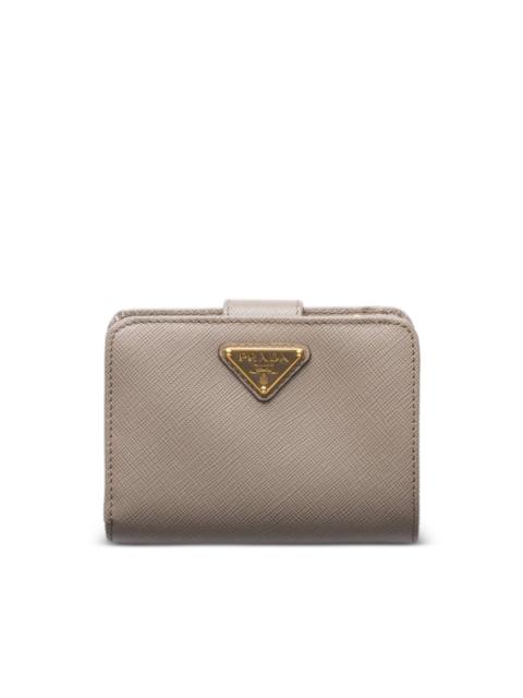 triangle-logo leather wallet Highlights - Black - Saffiano leather - Textured finish - Triangle logo - Silver-tone hardware - Bi-fold design - Top zip fastening - Concealed press-stud fastening - Internal logo stamp - Internal card slots - Coin pocket Composition Outer: Calf Leather 100% SIZE & FIT Measurement LENGTH 4.72 in(12 cm) WIDTH 3.14 in(8 cm)