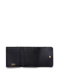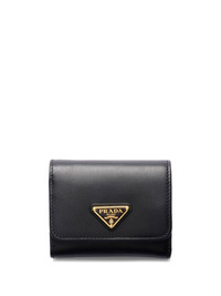 Saffiano wallet Highlights - Black - Leather - Gold-tone logo plaque - Gold-tone logo lettering - Foldover top - Clip fastening - Internal card slots Composition Lining: Leather 100% Outer: Leather 100% SIZE & FIT Measurement HEIGHT 3.34 in(8.5 cm) WIDTH 3.93 in(10 cm)