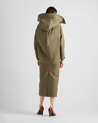 For the Fall Winter collection 2023 classic outerwear is elevated and reinterpreted according to couture construction. Inspired by the parka, this satin and cotton coat is a luxurious yet equally functional alternative. The band collar is enriched by the removable hood with wool fleece insert, while the fabric triangle logo on the back adds an extra touch of modernity. - Product code: 292160_13PG_F0161_S_232 - Menswear fit - Unlined - Band collar - Long sleeves - Back vent - Cuffs with strap and button - Zipper and button closure - Fabric triangle logo on the back - Detachable hood with buttons - Detachable wool fleece lining in hood attached with buttons - Flapped welt pockets with buttons - Drawstring waist - Treated fabric with a vintage look - Garment with stow-away Re-Nylon collar - Wool fleece lining - Sleeves lined with quilted Re-Nylon fabric - Padded - Back vent - Lining attached to outer shell with buttons - Imported - The model is 180 cm tall and wears a size 38 MATERIALS Wool