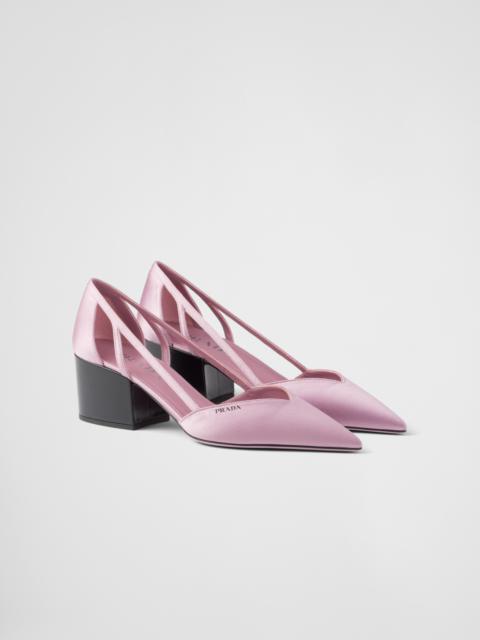 A dialogue between the elegance of the past and contemporary codes inspires the design of these satin pumps, a reinterpretation of a '50s silhouette with tapered lines and modernist details. - Codigo de producto: 1I736N_049_F0378_F_B055 - Screen-printed logo - Leather and rubber sole with hot-stamped logo - Brushed leather-covered heel, height 55 mm - Importado