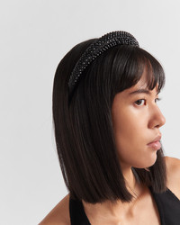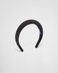 A shower of tonal crystals adds a dazzling touch to this refined, rounded headband in shiny satin. - Product code: 1IH020_2AWL_F0002 - With appliques - Triangle logo in painted metal - Imported Height: 2cm Width: 2cm MATERIALS Main material: Silk viscose