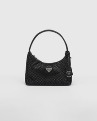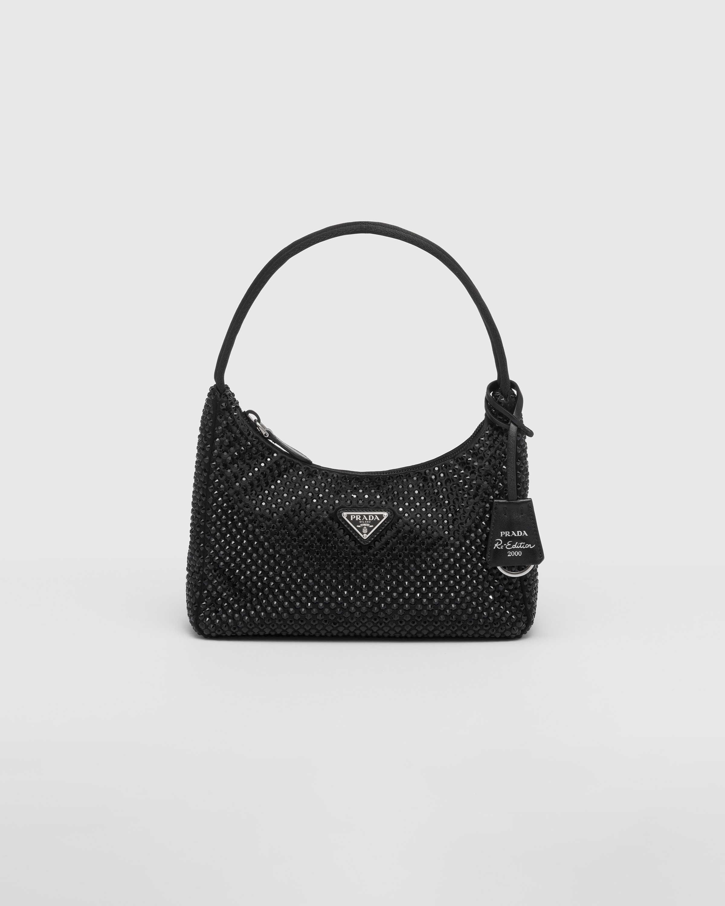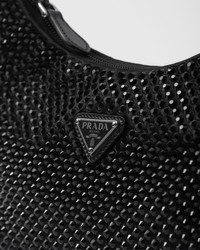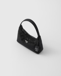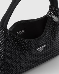 This mini hobo bag, an iconic Prada style, comes in a luxurious satin version studded with crystals and decorated with the emblematic enamel triangle logo. - Product code: 1BC515_2AWL_F0002_V_OOO - All-over synthetic crystals - Zipper closure - Enameled metal triangle logo - Silk satin lining - Height: 17cm - Width: 22cm - Length: 6cm - Imported MATERIALS Fabric