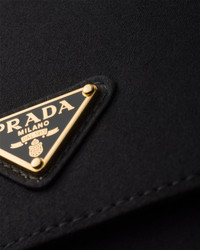 Satin, with its sophisticated, glossy sheen, enriches this bag with timeless elegance. The compact silhouette with sleek lines is defined by an adjustable shoulder strap embellished with refined metal buckles. The accessory is completed with the emblematic enameled metal triangle logo. - Product code: 1BD406_AC4_F0002_V_OOO - Satin handle, drop 26 cm - Metal hardware - Enameled metal triangle logo on the flap - Magnetic closure with flap - Satin interior with small pocket and removable mirror - Imported Height: 10.5cm Width: 22cm Length: 3cm MATERIALS Main material: Silk Viscose