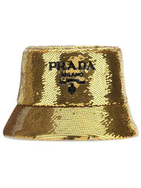 sequin-embellished bucket hat Highlights - Gold-tone/black - Sequin embellishment - Sequin logo to the front - Dropped narrow brim - Bucket body - Flat crown - Pull-on style - Full lining Composition Outer: Viscose 72%, Silk 28% Lining: Cotton 100% SIZE & FIT Measurement CIRCUMFERENCE 21.65 in(55 cm) BRIM 1.96 in(5 cm)
