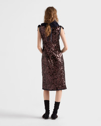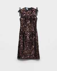 A unique texture with a dynamic, liquid effect characterizes this elegant, contemporary dress made with refined artisan workmanship. The sleek design is embellished with hand-embroidered sequins that create a shimmering and sophisticated surface. - Product code: P3O78R_176A_F0051_S_OOO - Sheath silhouette - Round neck - Lined - Back closure with ties - Sleeveless - Straight hem - Imported - The model is 178 cm tall and wears a size 38 Height: 105cm MATERIALS Main material: 100% polyamide - 100% polyester