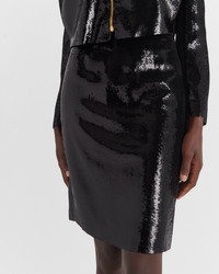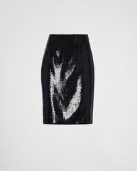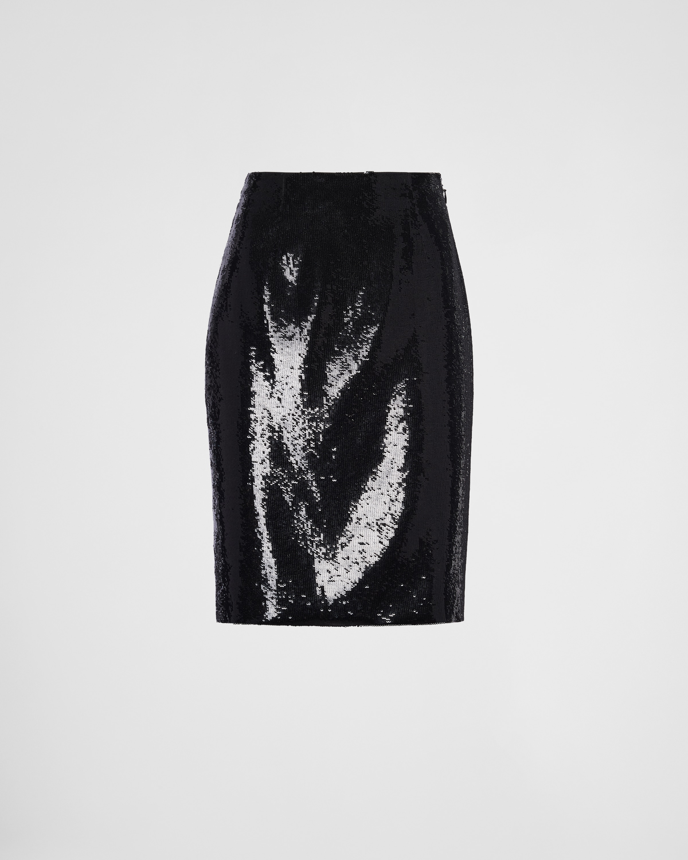 This skirt with sleek lines combines a tailored cut with the sparkling touch of tiny sequins. Blending simple shapes and the sophisticated allure of eveningwear, the pencil skirt is completed with an elegant back slit. - 제품 코드: P108JR_136W_F0002_S_OOO - Pencil skirt - Lined garment - Back slit - Side zipper closure with hook - 가져오기 - The model is 177 cm tall and wears a size 38 높이: 55cm MATERIALS Silk