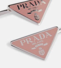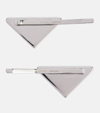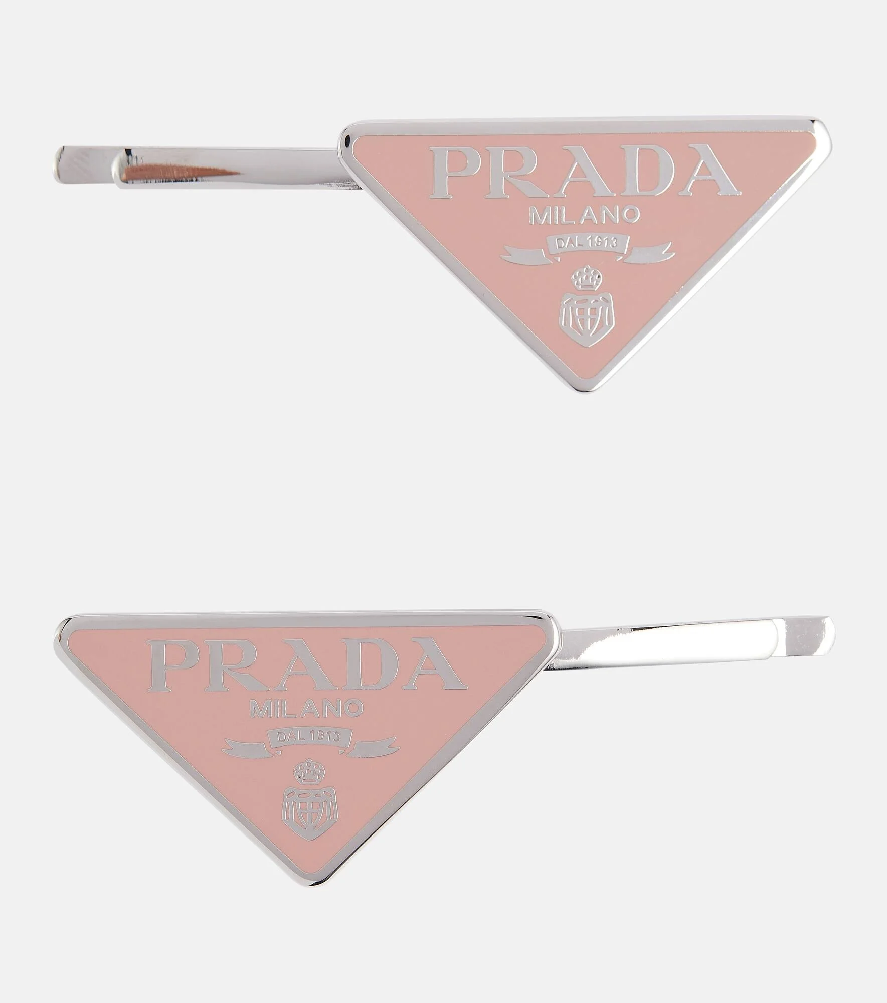Showcase your devotion to Prada with any look, courtesy of these hair clips. They're made from steel and adorned with the house's iconic triangle logo plaques. Product Details - Material: brass - Closure: clip-on - Made in Italy - Item number: P00630236 Size & Fit - Height 2,4cm-1" - Max. width 7cm-3"