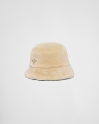 The bucket hat, an iconic accessory that distinguishes Prada collections, is made of shearling and decorated with the enameled metal triangle logo. - 商品货号: 1HC137_2EC9_F0379 - Enameled metal triangle logo - Silk lining - 产品标签信息