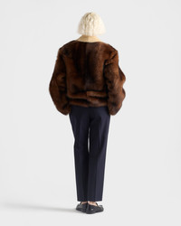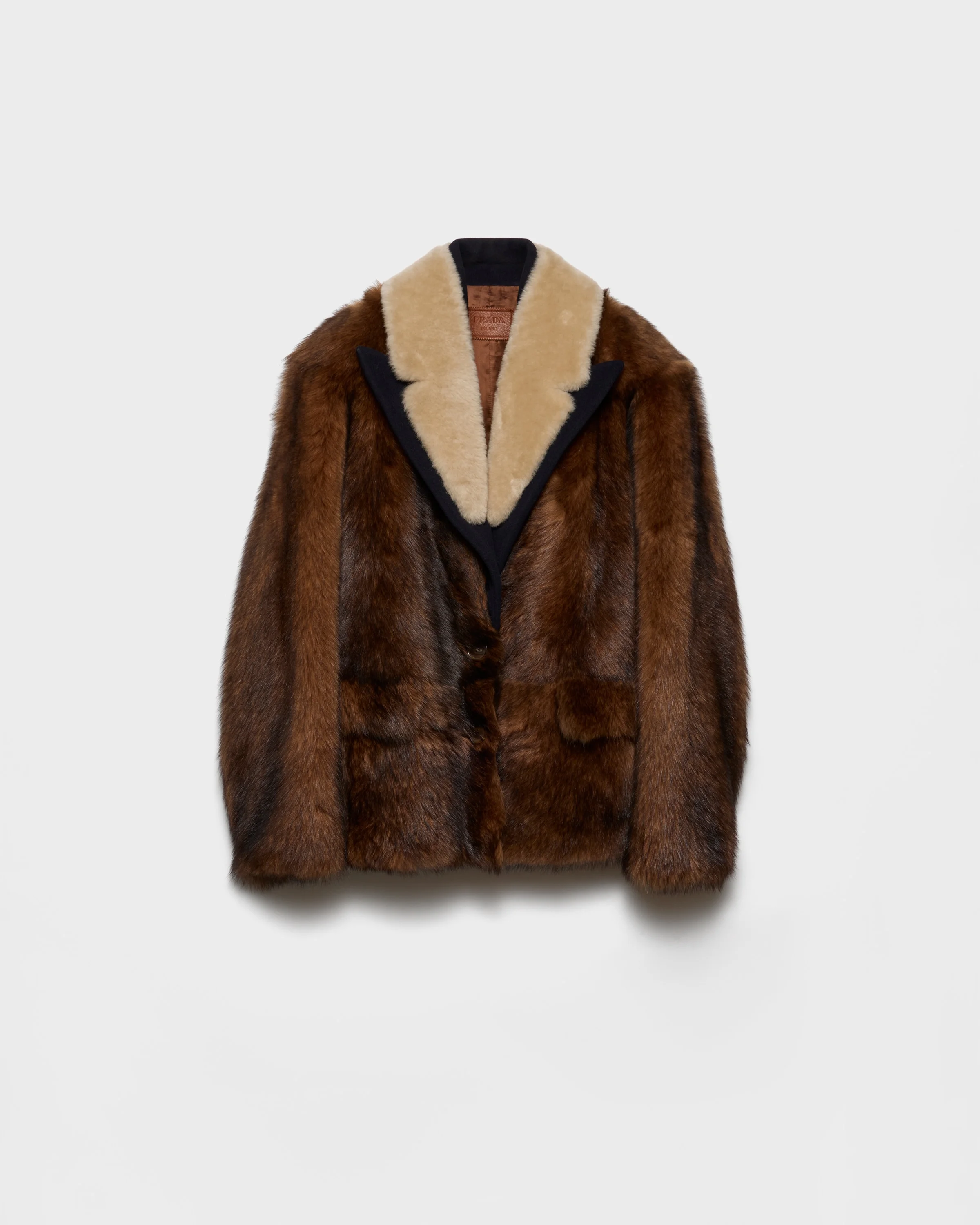 An enveloping texture and details recalling retro atmospheres: this shearling jacket is characterized by clean lines and romantic charm. - Product code: 55855_15PF_F0046_S_OOO - Lined garment - Regular fit - Front button closure - Straight sleeves - Flap pockets - Classic cloth collar with notch lapel and shearling applique - Imported - The model is 178 cm tall and wears a size 38 Height: 70cm MATERIALS Main material: Lambskin