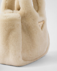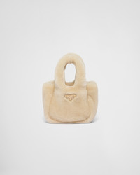 A deconstructed design accentuates the soft, round image of the silhouette of this shearling handbag. The distinctive Prada triangle logo adds its signature touch to the style. - Product code: 1BA349_2EC9_F0379_V_OVO - Metal hardware - Enameled metal triangle logo on the front - Magnetic closure - Nappa leather interior with three compartments - Imported Height: 15.5cm Width: 18cm Length: 10cm MATERIALS Main material: Lambskin