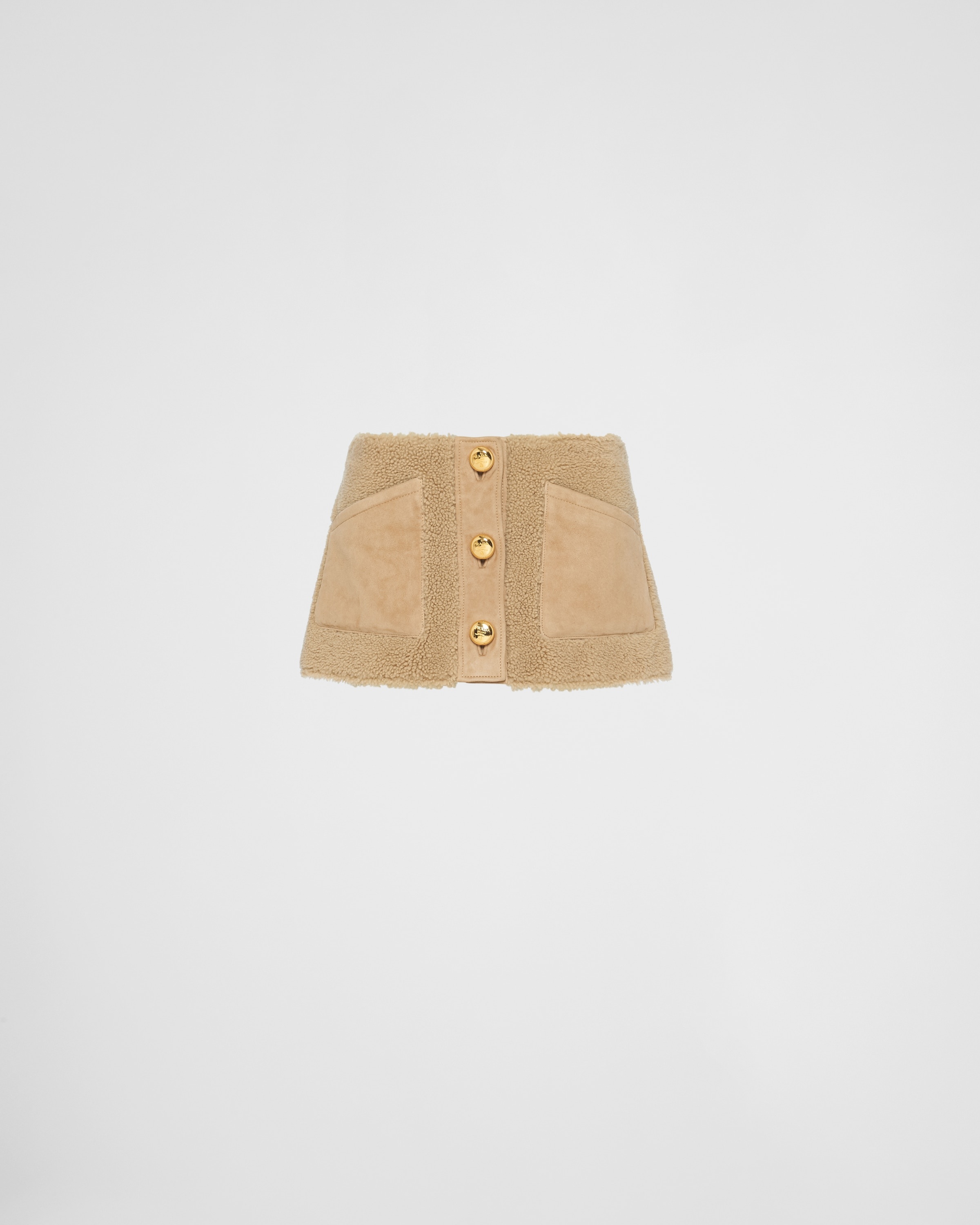 This shearling miniskirt closes with buttons on the front and has patch pockets. Modern elegance is combined with the touch soft of shearling in this style that combines unexpected elements, expressing Prada's hybrid identity. - 商品品番: 51844_13I3_F0040_S_232 - Unlined - Regular fit - Front button closure - Patch pockets - インポート 高さ: 47cm MATERIALS Sheepskin