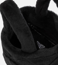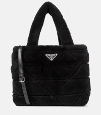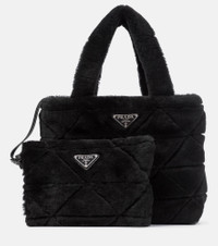 Reboot your accessories for the cooler months with this tactile shearling tote from Prada. Featuring the label's iconic triangular logo – and a pattern throughout to match – it comes with a matching zip pouch. Attach the slender leather shoulder strap for days when you need to go hands free. Product Details - Made in Italy - Comes with dust bag - Designer color name: Nero - Color of fastening: silver - Closure: open top - Internal details: suede lining, internal zipped pouch - Material: lamb fur - Detachable, adjustable shoulder strap, Top handles - Item number: P00541441 Size & Fit - Height 21cm-8.5" - Width 25cm-10" - Depth 12cm-4.5" - Length of handles 33cm-13" - Min. length shoulder strap 105cm-41.5" - Max. length shoulder strap 115cm-45.5" - Clutch height 14cm-5.5" - Clutch width 20cm-8"