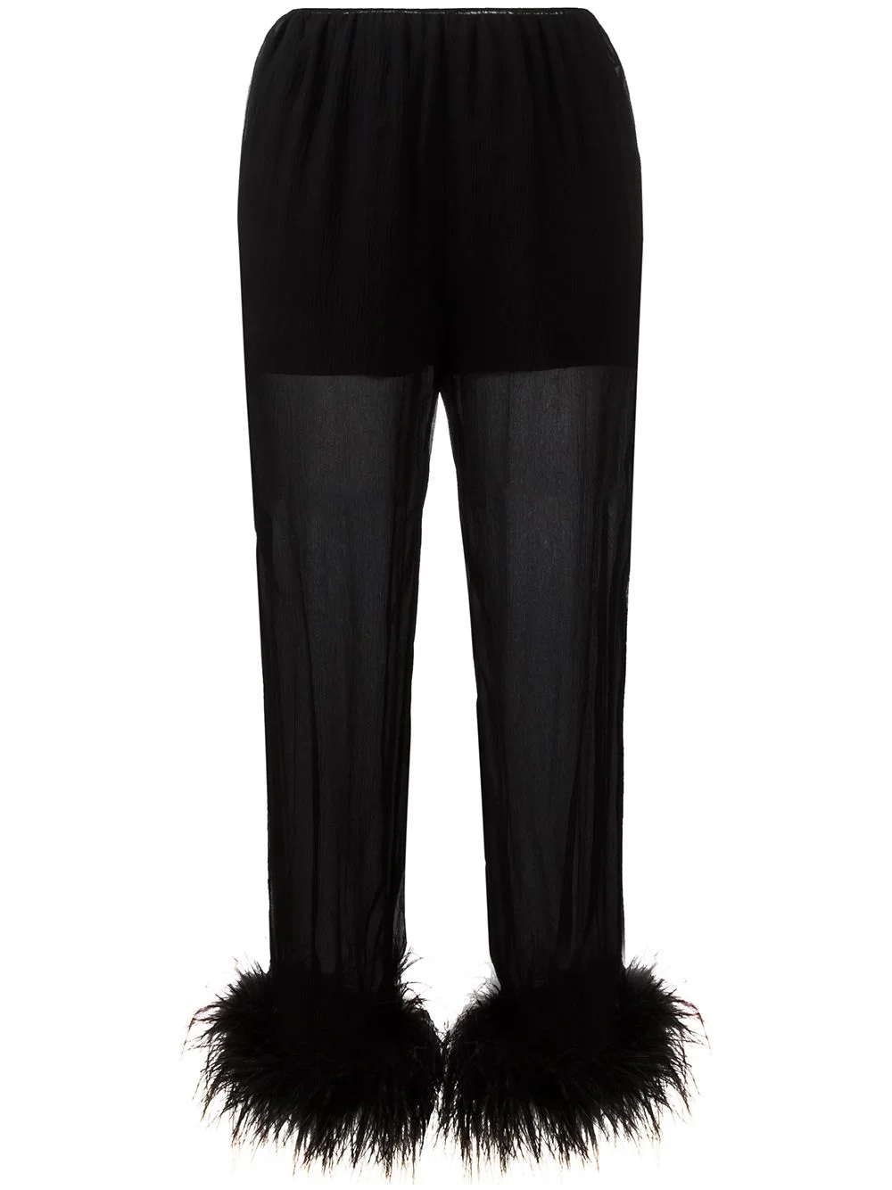 sheer effect trousers with Ostrich feather cuffed ankles