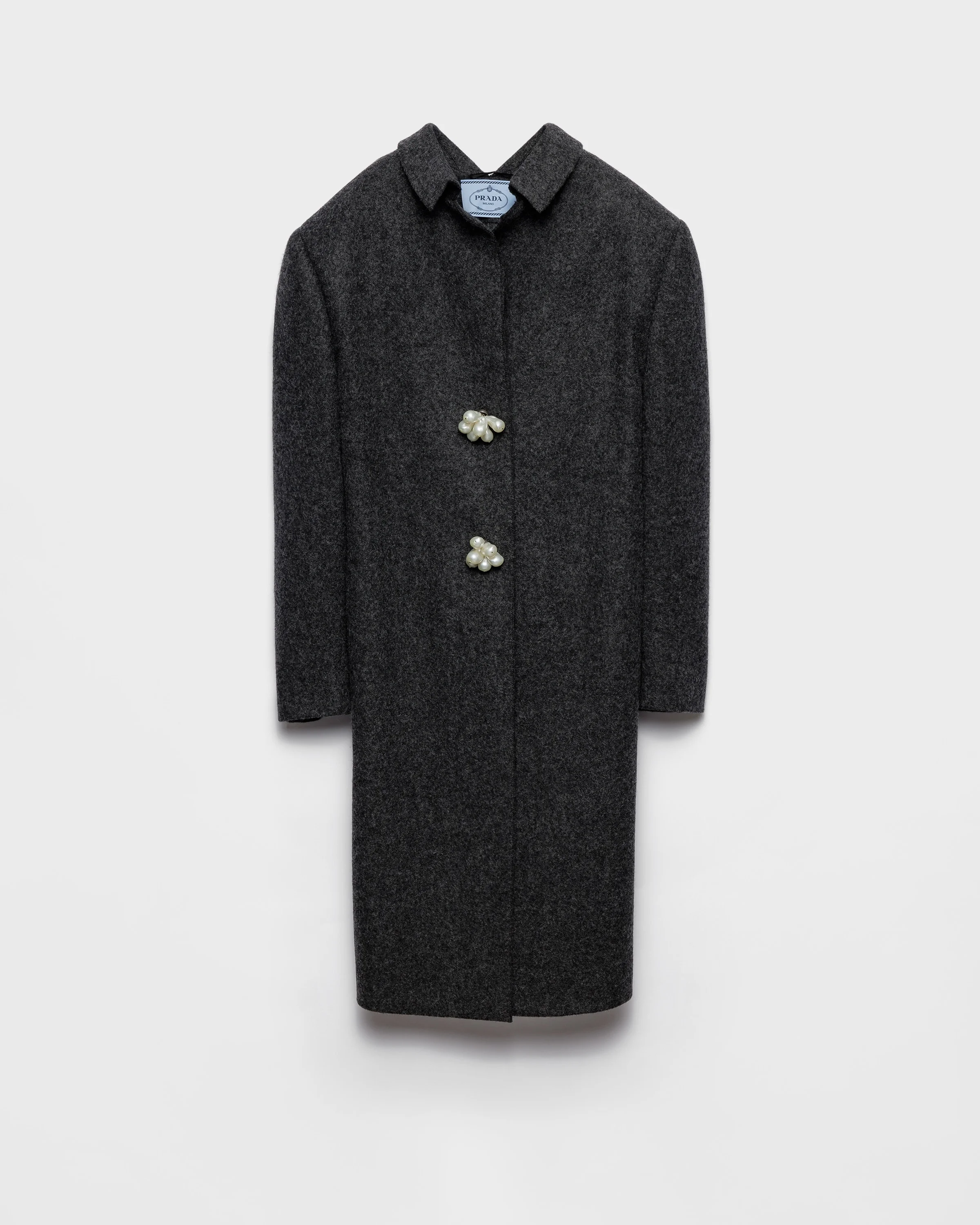 Sartorial precision and the unexpected beauty of imperfection come together in the design of this shetland wool coat, enhanced by jewel buttons. The garment features a sophisticated construction, disrupted by an inverted collar, an unexpected detail that lends the design a modernist flair. - Product code: P674SY_18OY_F0480_S_OOO - Straight fit - Lined garment - Collar - Front closure with jewel buttons - Sleeves with slits - Side pockets - Back slit - Imported - The model is 180 cm tall and wears a size 38 Height: 110cm MATERIALS Main material: 100% virgin wool