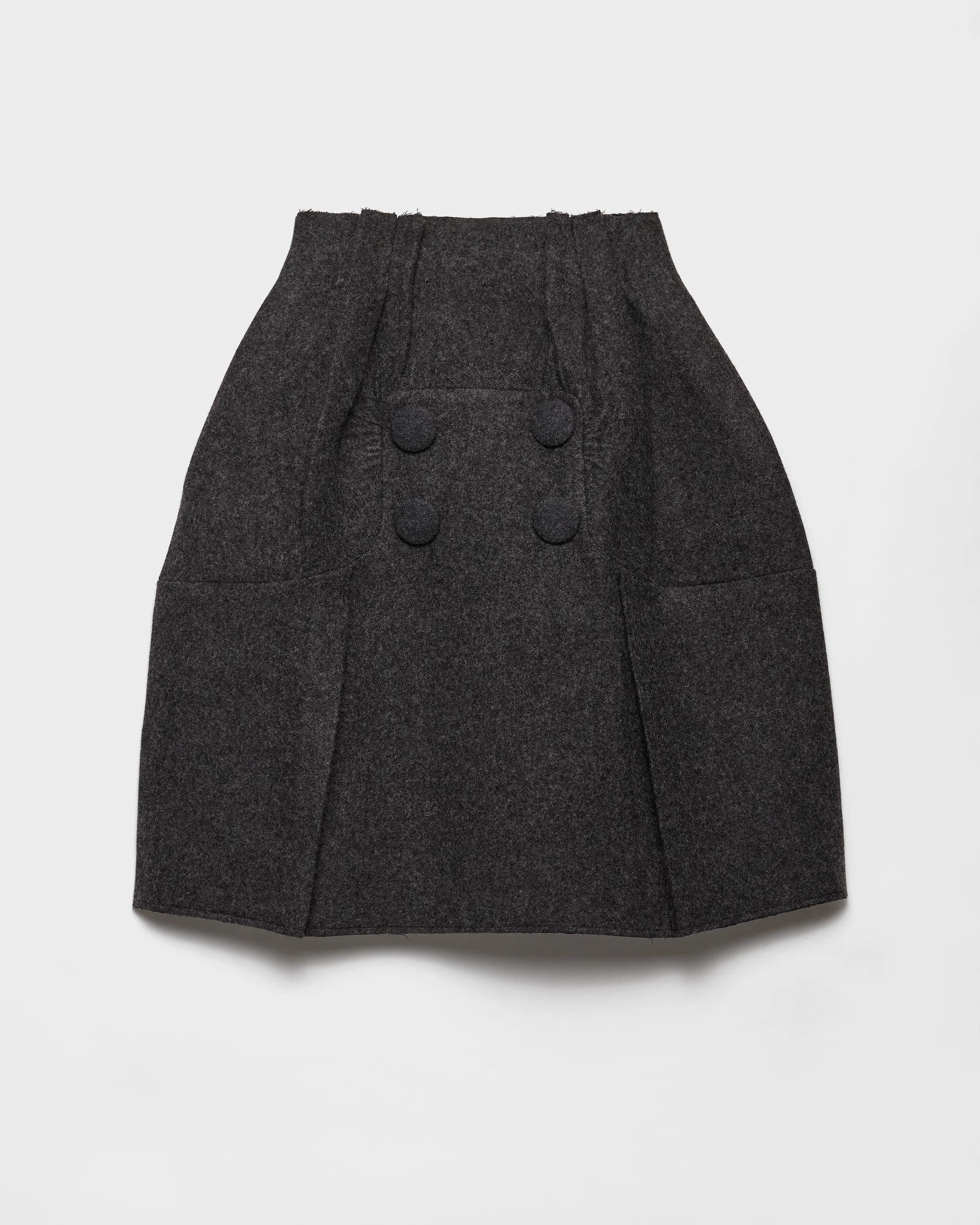 The Fall/Winter 2025 collection explores the perception of femininity and redefines its iconic pieces. This Shetland wool skirt features a structured silhouette, highlighted by soft draping at the waist and accented with tone-on-tone oversized buttons that evoke a vintage charm. - Product code: P139ZU_18OY_F0480_S_OOO - Loose fit - Lined garment - Side pockets - Covered maxi buttons - Imported - The model is 178 cm tall and wears a size 38 Height: 67cm MATERIALS Main material: 100% virgin wool