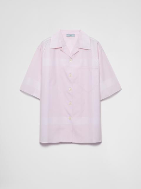 Harmony between different influences distinguishes the design of this shirt that blends sporty inspiration, retro lines, and feminine details. A play of duality and transparencies emerges in this short-sleeve shirt with unique style, defined by the bowling collar and embellished with delicate floral embroidery. The boxy silhouette is complemented by the iconic fabric triangle logo and sartorial label applied on the back. - Product code: P433BR_14KF_F0009_S_182 - Straight fit - Camisole top underneath - Front button closure - Patch pocket on the front - Triangle logo with sartorial label - Side slits - Straight hem - Imported - The model is 178 cm tall and wears a size 38 - Height: 68cm MATERIALS Silk