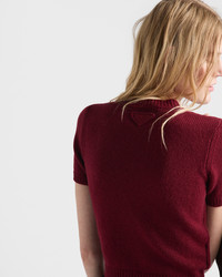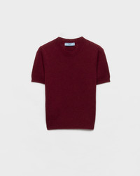 The refined simplicity of the shapes inspires the design of this short-sleeved cashmere sweater characterized by a slim silhouette with sophisticated, feminine allure. - Product code: P24I2R_15O5_F0399_S_OOO - Plain knit - Slim-fit silhouette - Ribbed knit crew neck - Regular shoulder - Ribbed knit cuffs and hem - Knit triangle logo - Imported Height: 52cm MATERIALS Main material: 100% cashmere