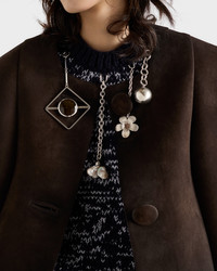 For the Fall/Winter 2025 collection, knitwear is enriched with jewel details and precious embellishments. This short-sleeved wool sweater with a soft, oversized silhouette is embellished with metal and stone pendants in a new dialog between classic shapes and symbolic meanings. - Product code: P24U2E_18HH_F022X_S_OOO - Short sleeves - Plain knit - Oversized fit - Ribbed knit crew neck - Regular shoulder - Ribbed knit hem - Metal and stone pendants - Imported - The model is 180 cm tall and wears a size 38 Height: 68cm MATERIALS Main material: 100% Virgin Wool