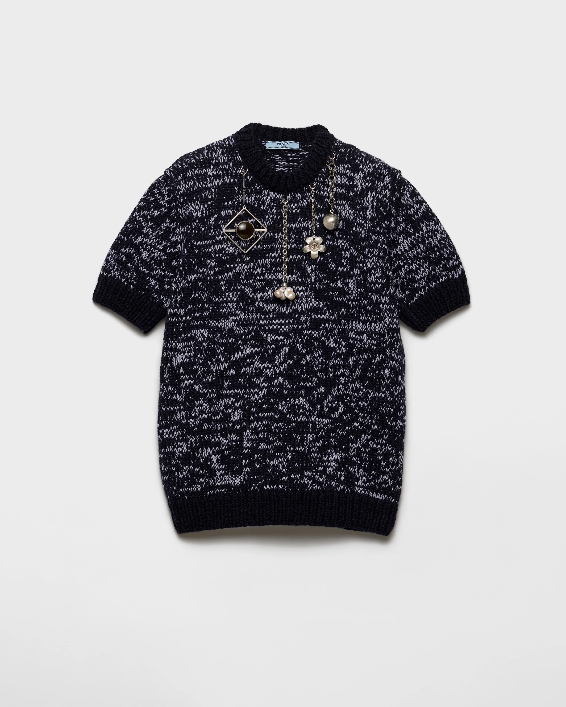 Short-sleeved wool sweater with pendants
