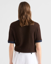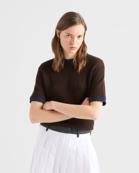 This sweater, with a design that combines elegance and sport, is a contemporary interpretation of a wardrobe classic. The short-sleeved, boxy silhouette made of soft cashmere is enriched with neck and sleeve trim in a contrasting color. - Product code: P24Z2H_18W4_F0A6E_S_OOO - Short sleeves - Plain knit - Menswear fit - Raglan shoulder - Ribbed knit hem - Knit triangle logo - Crew neck and hem in a contrasting fabric - Imported - The model is 181 cm tall and wears a size 38 Height: 58cm MATERIALS Main material: 100% Cashmere