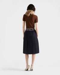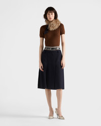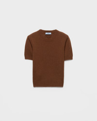 The refined simplicity of the shapes inspires the design of this short-sleeved cashmere sweater characterized by a slim silhouette with sophisticated, feminine allure. - Product code: P24I2R_15O5_F0005_S_OOO - Plain knit - Slim-fit silhouette - Ribbed knit crew neck - Regular shoulder - Ribbed knit cuffs and hem - Knit triangle logo - Imported - The model is 180 cm tall and wears a size 38 Height: 52cm MATERIALS Main material: 100% cashmere