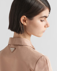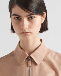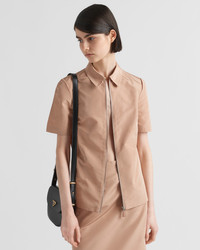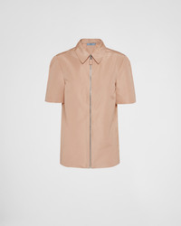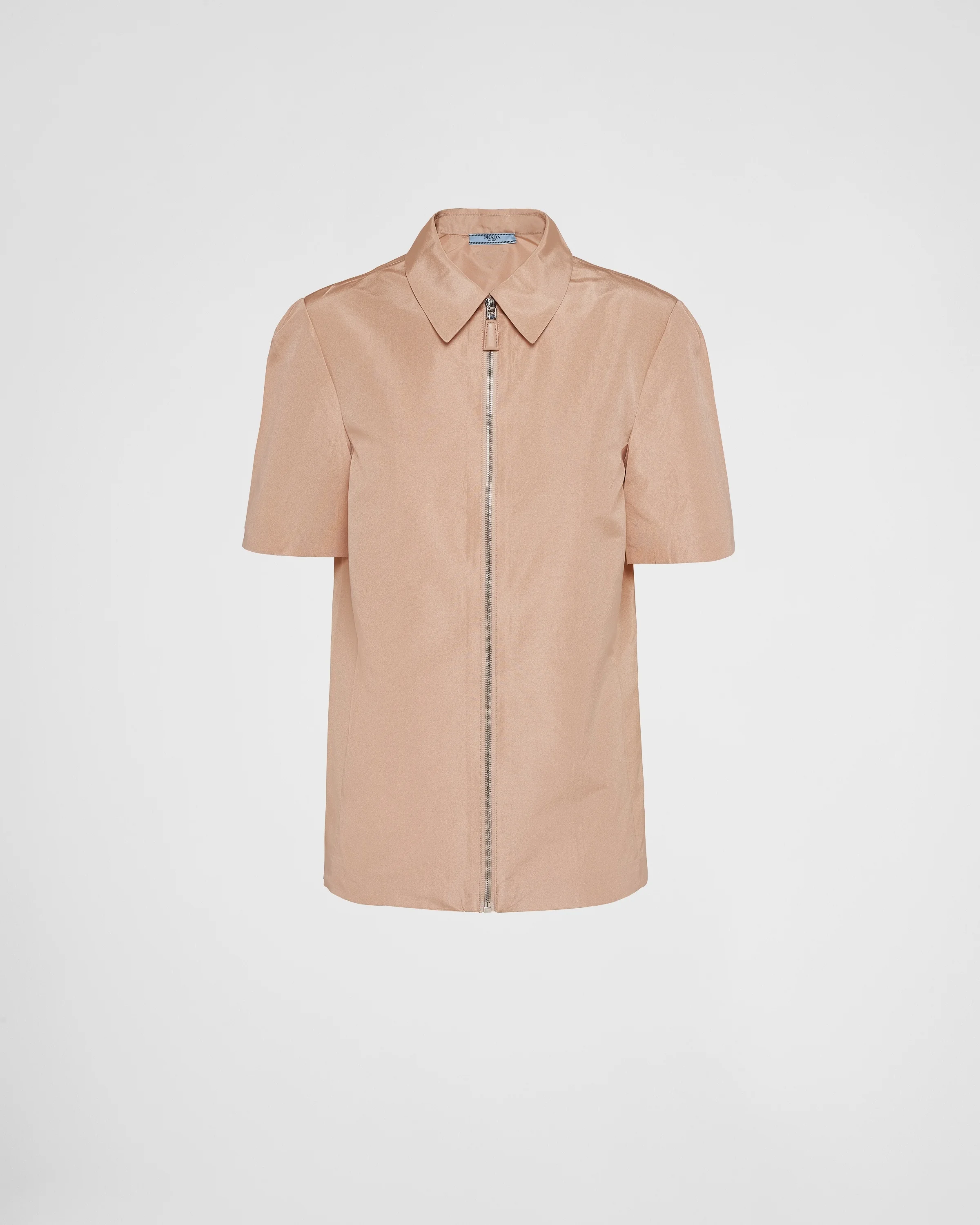 Blending sophisticated details and sporty touches, this shirt reworks Prada's emblematic stylistic codes with a contemporary edge. The purity of form, an expression of the minimalism of the 1990s, is enhanced by the precious touch of faille, an iconic material of the brand. The design with sleek lines and shirt collar is completed by the pragmatic and modern detail of the zipper closure and the iconic signature of the enameled metal triangle logo. - Product code: P409H_14KH_F0236_S_OOO - Slim fit - Shirt collar - Front zipper closure - Short sleeves - Leather triangle logo - Straight hem - Imported - The model is 180 cm tall and wears a size 38 Height: 63cm MATERIALS Silk