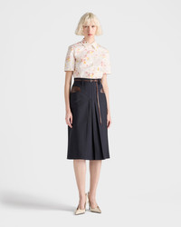 A delicate floral print embellishes this short-sleeved shirt with sleek lines. The poplin garment embodies a romantic and sophisticated style. - Product code: P478I_178Z_F0638_S_OOO - «Bouquet» print - Straight fit - Unlined - Shirt collar - Front button closure - Short sleeves - Fabric triangle logo - Straight hem - Imported - The model is 180 cm tall and wears a size 38 Height: 60cm MATERIALS Main material: 100% cotton