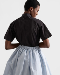 This shirt with a pragmatic character and casual attitude is characterized by its short-sleeves and straight cut. Utility-inspired details enrich the design made of cotton poplin. - Product code: P411J_1XV2_F0002_S_OOO - Menswear fit - Classic collar - Front button closure - Short sleeves - Flapped patch pocket - Fabric triangle logo - Pleats on front and back - Imported - The model is 179 cm tall and wears a size 38 Height: 69cm MATERIALS Main material: 100% Cotton