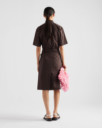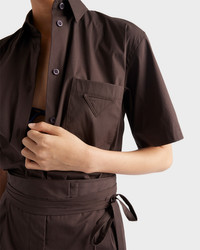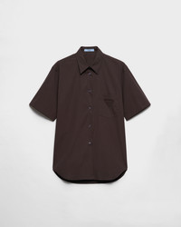 This poplin shirt features a casual silhouette with menswear lines. The oversized fit characterized by short sleeves and a classic collar is completed with the tonal triangle logo. - Product code: P455I_12VC_F0192_S_OOO - Menswear fit - Unlined - Classic collar - Front button closure - Short sleeves - Patch pocket - Conceptual fabric triangle logo - Rounded hem - Imported - The model is 178 cm tall and wears a size 38 Height: 75cm MATERIALS Main material: 78% cotton 4% elastane 18% polyamide