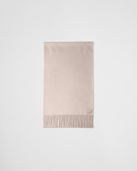 A luxurious silk and cashmere blend enhances the sleek design of this scarf with classic fringed edges. The soft and refined accessory is embellished with the iconic enameled metal triangle logo. - Product code: 1FS065_2COP_F0236 - Enameled metal triangle logo - Fringe on two sides - 51% silk 49% cashmere - Imported Height: 170cm Width: 35cm MATERIALS Main material: Silk cashmere