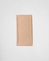 This elegant and versatile silk and wool jacquard shawl is made with special techniques that highlight the Symbole geometric motif, giving the design a refined three-dimensional effect. The lettering logo, framed by the iconic triangle, embellishes the sophisticated accessory that can be wrapped around the neck or worn draped on the shoulders. - Product code: 1FS051_2CN1_F0065 - Jacquard logo - Jacquard knit - Fringe on four sides - 60% silk 40% wool - Imported Height: 140cm Width: 140cm MATERIALS Main material: Silk wool