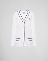 An elegant knit technique creates the delicate color contrast that trims the edges of this fine silk cardigan. The lines on the pockets and neckline accent the garment decorated with the iconic intarsia lettering logo. - Product code: P25L11_10OX_F0964_S_221 - Long sleeves - Plain stitch knit - Masculine style - Ribbed knit neckline trim -- Semi-raglan shoulder - Ribbed knit cuffs and hem - Intarsia logo - Front button closure - Welt pockets - Breast pocket - Imported Height: 60cm MATERIALS Main material: 100% recycled silk