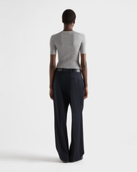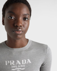 Pragmatism and everyday life inspire a series of simple silhouettes that contrast with eclectic ensembles and eye-catching garments, creating new languages and balances. Defined by a slim fit and ribbed knit, this short-sleeved crew-neck sweater is made of silk and features the intarsia lettering logo on the front. - Product code: P24T1F_11MY_F0031_S_WMO - Short sleeves - Ribbed knit - Slim fit - Ribbed knit crew neck - Regular shoulder - Intarsia logo - Imported - The model is 180 cm tall and wears a size 38 Height: 62cm MATERIALS Main material: 100% recycled silk