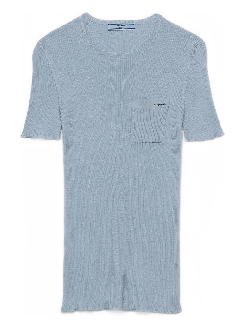 silk crew-neck top Highlights - Light blue - Ribbed knit - Crew-neck - Patch pocket - Embroidered logo Composition Recycled Silk 100% Washing instructions Read Manufacturer Guidelines