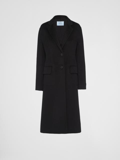 This single-breasted cashgora coat with elegant allure is defined by a sophisticated design with a straight cut and back vent. - Product code: P668ME_13FY_F0K74_S_232 - Menswear fit - Unlined - Classic lapel - Front 2-button closure - Straight 3-button sleeves - Flapped welt pockets - Back vent - Leather label - Imported - The model is 178 cm tall and wears a size 38 Height: 110cm MATERIALS Wool
