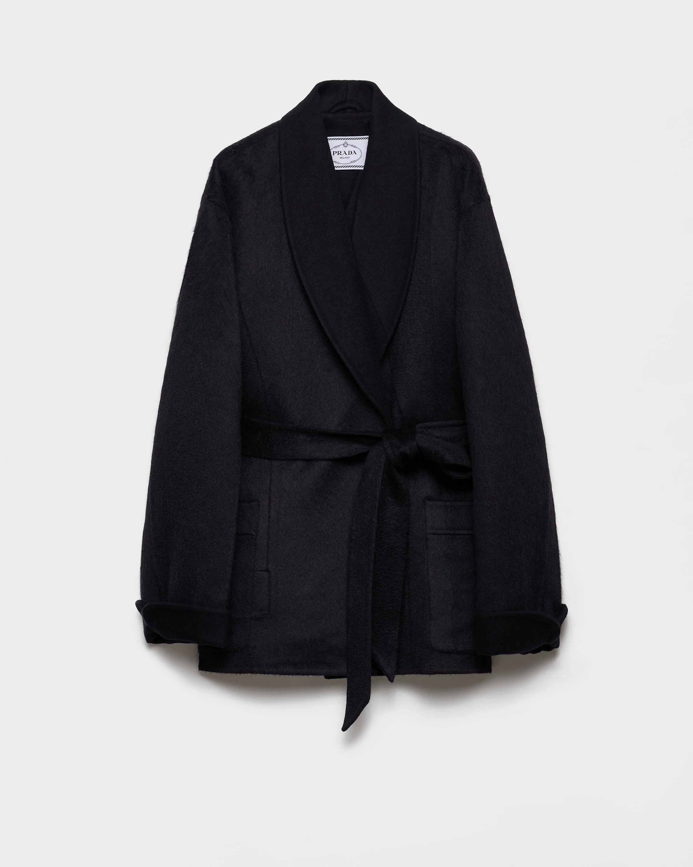 Double velour fabric envelops the body in an impeccably constructed design. Shawl lapels, the detachable belt and sleeves with slits interpret the caban jacket with a sleek, tactile vision. - Product code: P661S_17VD_F0008_S_OOO - Straight fit - Shawl collar - Fabric belt closure on the front - Sleeves with slits - Patch pockets - Detachable fabric belt - Imported - The model is 178 cm tall and wears a size 38 Height: 115cm MATERIALS Main material: 25% alpaca 70% cashmere 5% virgin wool