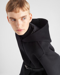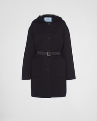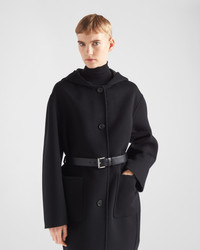 Sleek, minimalist lines characterize this double wool hooded coat with versatile yet elegant style. - 商品品番: P685QK_13L1_F0700_S_232 - Loose fit - Unlined - Hooded - Logo button front closure - Straight sleeves - Patch pockets - Leather belt - All-over logo-lettering pattern inside - インポート - The model is 179 cm tall and wears a size 38 高さ: 90cm MATERIALS Wool/Silk