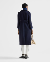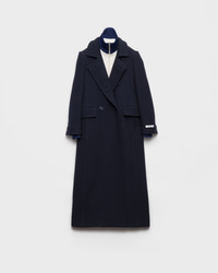 The tension between heterogeneous elements and styles defines this natte fabric coat, an expression of intellectual and irreverent elegance. The 70s-inspired tailored silhouette combines bon ton allure with unexpected athleisure details. - Product code: P618T_18VY_F0008_S_OOO - Straight fit - Lined garment - Stand-up collar - Front button closure - Straight sleeves with button - Flapped welt pockets - Back vent - Logo label - Contrasting jersey fleece details - Imported - The model is 180 cm tall and wears a size 38 Height: 48cm MATERIALS Main material: 100% virgin wool