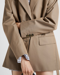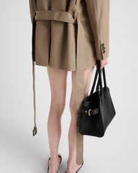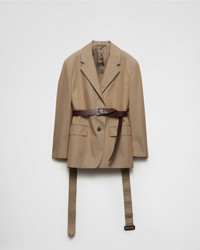 This cotton twill jacket has a menswear-inspired silhouette reinterpreted with refined, contemporary details. A simple leather belt accents the single-breasted garment characterized by the oversized fit and classic lapels and decorated with the iconic enameled metal triangle logo. - Produktcode: P584OK_14ZG_F034X_S_OOO - Menswear fit - Lined - Classic lapel - Two-button front closure - Straight sleeves with three buttons - Flap pockets - Leather belt detail at the waist - Eingefuhrt - The model is 178 cm tall and wears a size 38 Hohe: 76cm MATERIALS Cotton