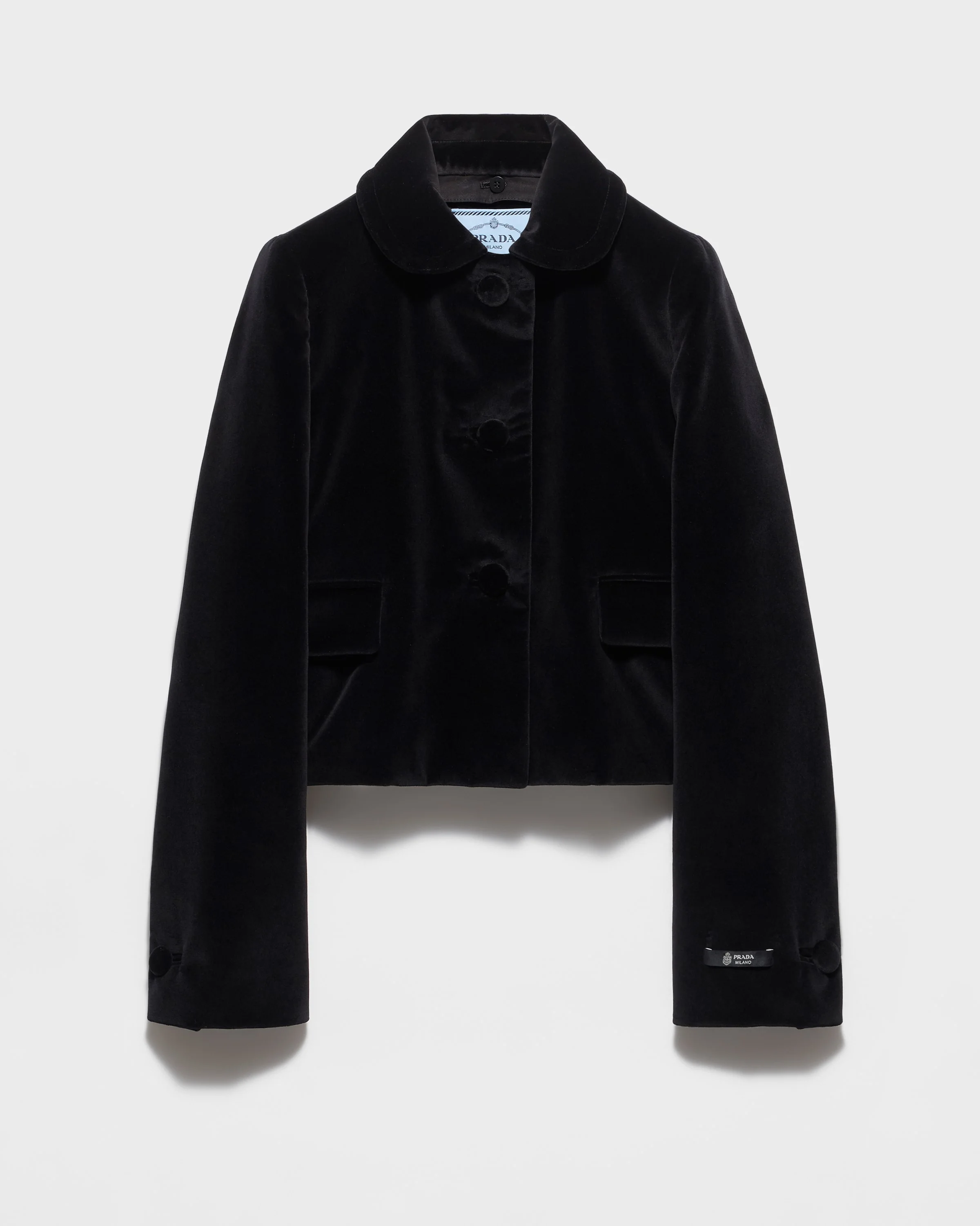 This velvet jacket with refined details features bon ton allure and contemporary proportions. The feminine silhouette is enriched by the removable collar that adds an elegant, versatile touch. - Product code: P585P_M65_F0002_S_OOO - Straight fit - Lined garment - Round neck - Front closure with fabric-covered buttons - Straight sleeves with button - Flapped pockets - Half-belt - Logo label - Detachable collar - Imported - The model is 180 cm tall and wears a size 38 Height: 48cm MATERIALS Main material: 100% cotton