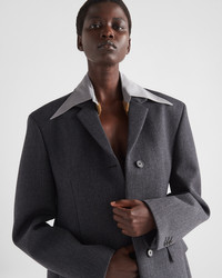 For the Fall Winter 2023 collection Prada plays with menswear-inspired cuts, revolutionizing the concept of detail, reducing it to the essence to make the garments unique. The single-breasted wool jacket is reinterpreted in a process of reduction and redefinition of meanings that introduces a new concept of tailoring. The boxy design is accented by a removable poplin collar with knit insert, an unexpected and typically Prada element that evokes a poetic gesture. - Product code: P503O_127U_F0P84_S_232 - Menswear fit - Lined - Notch lapel - Three-button front closure - Straight sleeves with three buttons - Double welt pockets - Back vent - Detachable poplin and knit collar detail - Height: 74cm - Imported MATERIALS Wool