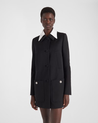This sophisticated and feminine wool sateen coat has a constructed straight silhouette emphasized by precious details. The single-breasted coat is decorated with a removable collar in a contrasting color and illuminated by jewel buttons that enhance the garment, adding an elegant and refined note. - Product code: P698Q_477_F0002_S_OOO - Straight fit - Lined - Shirt-style collar - Front button closure - Straight sleeves - Patch pockets - Removable white satin collar - Jewel buttons on the front pockets - Imported - The model is 177 cm tall and wears a size 38 Height: 80cm MATERIALS Wool