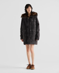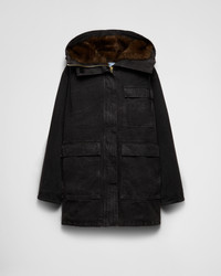 Utility style inspires the design of this canvas coat made with artisan techniques for an aged effect with vintage charm. The functional style features a large shearling-lined hood that completes the look with a soft, refined note. - Product code: 292240_157N_F0002_S_OOO - Long sleeves - Ribbed knit cuffs - Zipper and hook-and-loop closure - Patch pockets - Shearling lined hood - Treated and garment-dyed canvas - Matching stitching - Triangle logo - Garment length: 88 cm, Size: 40 - Imported - The model is 180 cm tall and wears a size 38 Height: 88cm MATERIALS Main material: 100% cotton