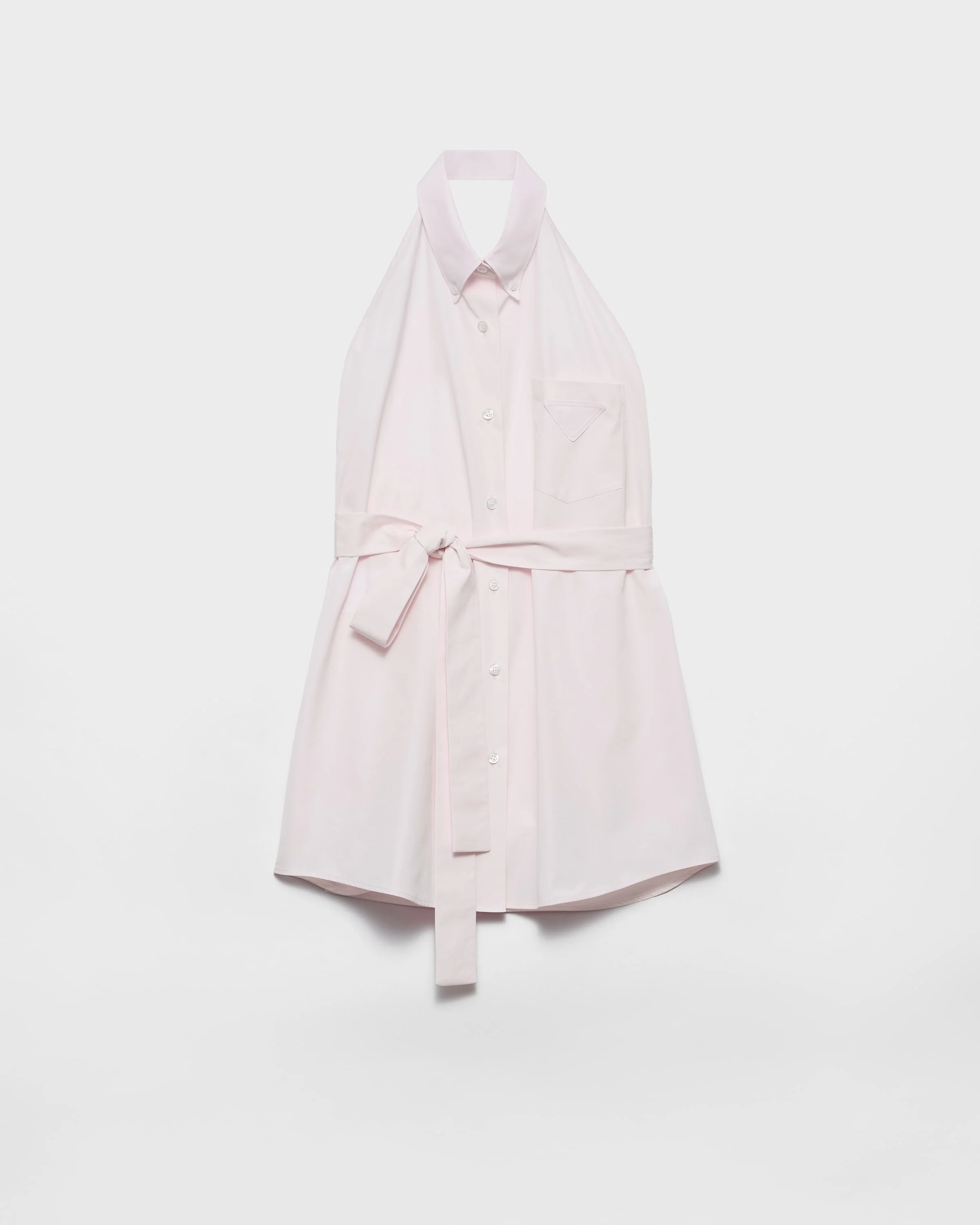 This sleeveless cotton poplin shirt features bold contrasts that create a hybrid silhouette. The refined halter neck paired with a classic menswear collar adds an unexpected touch to the design. - Product code: P433I_1XV2_F0442_S_OOO - Straight fit - Unlined - Halter neck - Front button closure - Sleeveless - Patch pocket on the front - Conceptual fabric triangle logo - Rounded hem - Imported - The model is 176 cm tall and wears a size 38 Height: 78cm MATERIALS Main material: 100% cotton